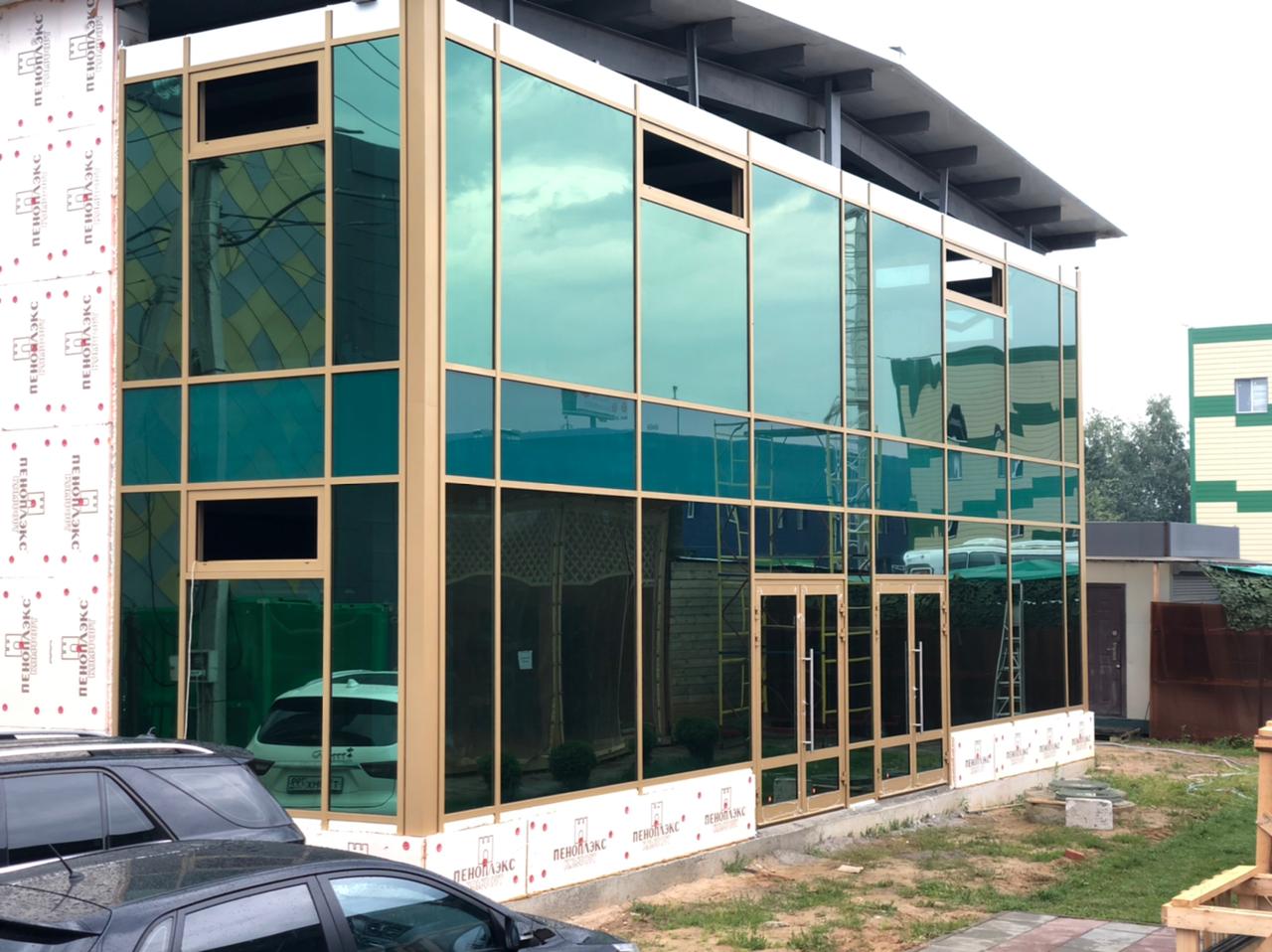 Применение алюминиевой светопрозрачной системы NEW TEC 150, NEW TEC 68 с декорированием профиля и энергосберегающим мультифункциональным стеклопакетом.